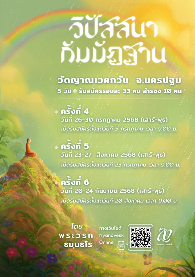 ครั้งที่ 4 (เสาร์-พุธ) วันที่ 26 - 30 กรกฎาคม 2568 [คลิกเพื่อสมัคร] [ตารางปฏิบัติ]