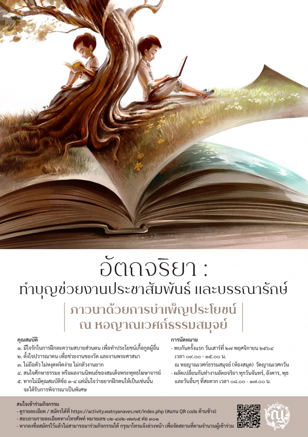 - ช่วยจัดทำทะเบียน ตรวจนับ และจัดคลังหนังสือธรรมะ