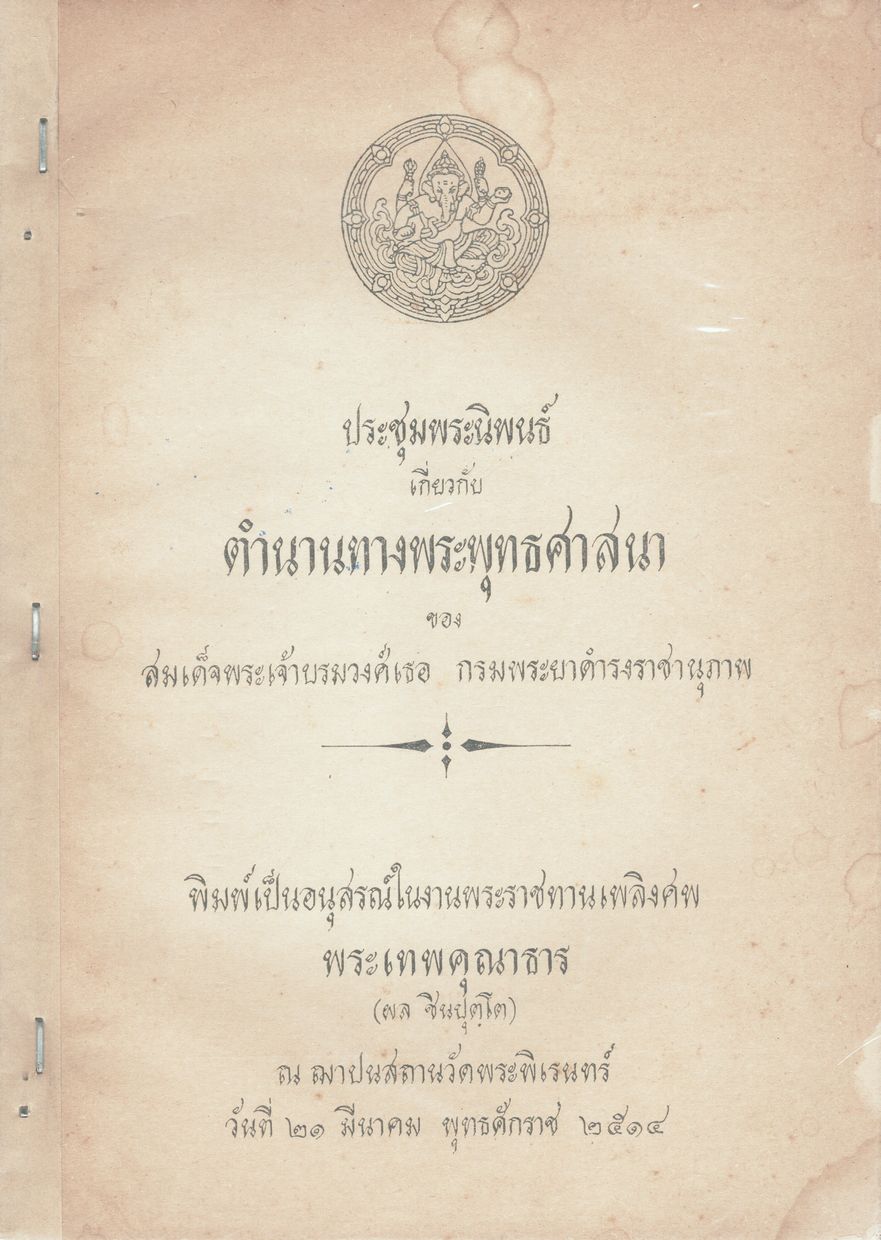 ประชุมพระนิพนธ์ เกี่ยวกับตำนานทางพระพุทธศาสนา ของสมเด็จพระเจ้าบรมวงศ์เธอ กรมพระยาดำรงราชานุภาพ