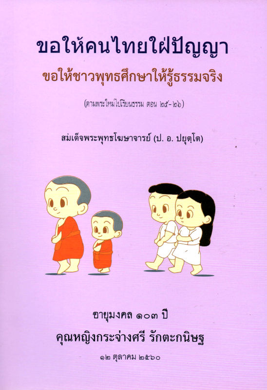 ขอให้คนไทยใฝ่ปัญญา ขอให้ชาวพุทธศึกษาให้รู้ธรรมจริง